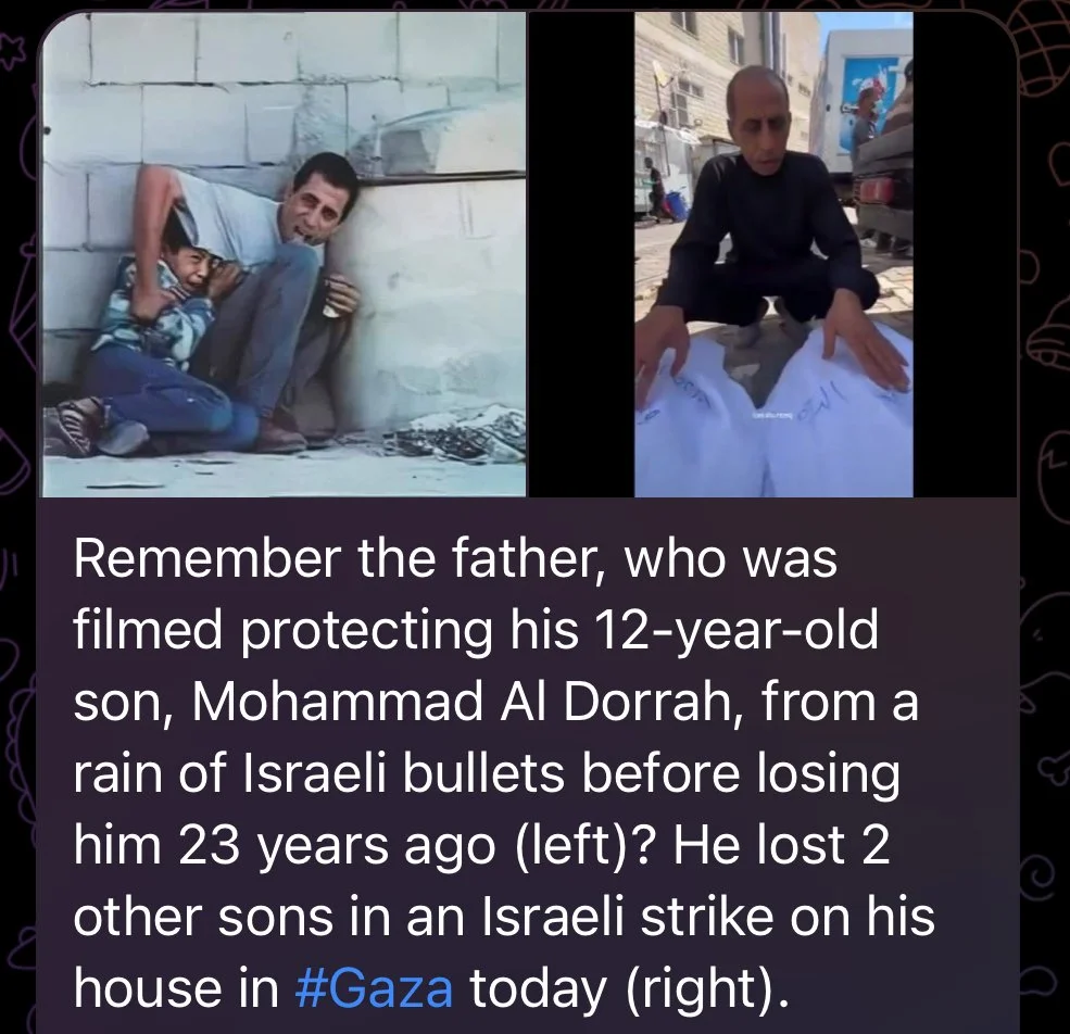 Father Who Lost His Son From Israeli Strikes 23 Years Ago Loses Two Sons Today Palestine Oct 15 Written By Frances Cramer Tatum Source: https://t.me/QudsNen/82512 Frances Cramer Tatum