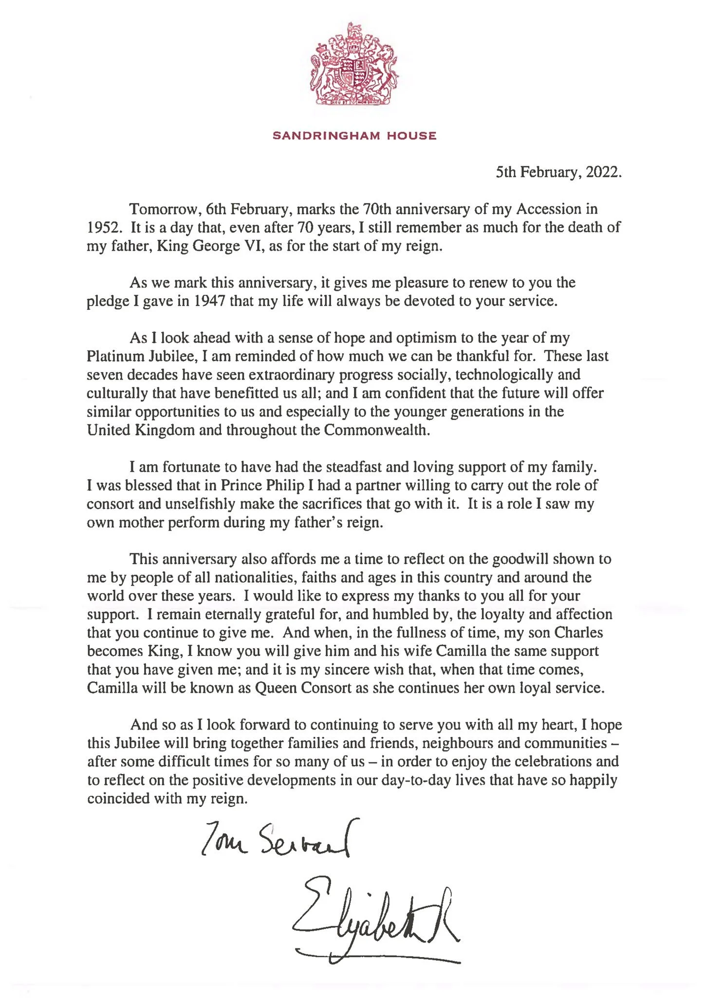 Queen Elizabeth II’s Statement on Her 70th Anniversary of Her Accession in 1952 British Royal Family Feb 6 Written By Frances Cramer Tatum Source: Instagram: @TheRoyalFamily Frances Cramer Tatum